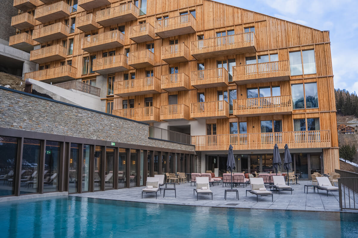 Gönnen Sie sich einen Moment purer Entspannung im Wellnessbereich der 5-Sterne- Ferienanlage Guernerés in Grimentz. Lassen Sie sich von der wohltuenden Wärme des 20 x 9 Meter großen, beheizten Innen- und Außenpools umhüllen, einer wahren Oase der Ruhe. Verlängern Sie das Erlebnis im Nassbereich zwischen Hammam, Sauna, Erlebnisduschen und Entspannungsbereich mit Liegestühlen. Im Außenbereich können Sie sich auf der Terrasse mit Blick auf die umliegenden Berggipfel erholen. Ein elegantes und intimes Ambiente, ideal, um nach einem Tag in den Bergen neue Energie zu tanken und im Herzen der Schweizer Alpen Ruhe, Ausgeglichenheit und Entspannung zu finden.