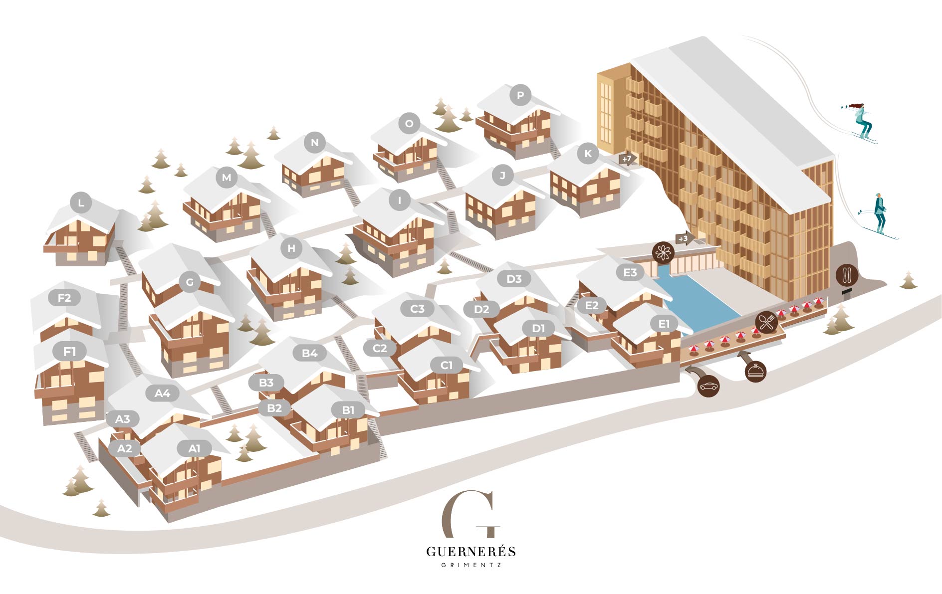 Entdecken Sie parallel zur Résidence Guernerés den 5-Sterne-Chalet-Dorf Guernerés, der Ihnen Ruhe und Erholung im Herzen der Walliser Berge bietet. Erleben Sie im Winter die Alpen in ihrer ganzen Pracht: Entscheiden Sie sich für ein Einzelchalet, um großzügige Räumlichkeiten und absolute Privatsphäre zu genießen, oder wählen Sie ein Chalet-Apartment, ein Chalet, das in mehrere Apartments unterteilt ist und sich ideal für einen geselligen Urlaub eignet. Diese Unterkünfte sind ideal, um neue Energie zu tanken, und verbinden alpinen Charme, Eleganz und erstklassigen Komfort.